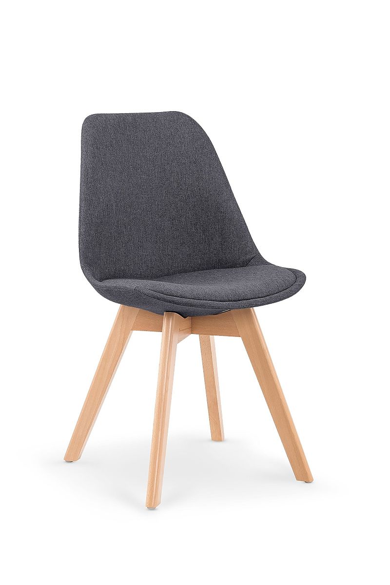 Der Stuhl ist mit einem strapazierfähigen Stoff in dunkelgrauer Farbe bezogen, der sich angenehm anfühlt. Die Stuhlbeine sind aus Massivholz gefertigt.