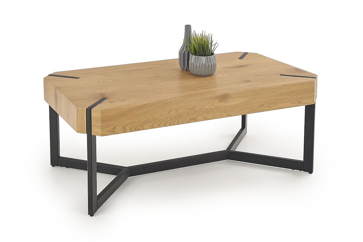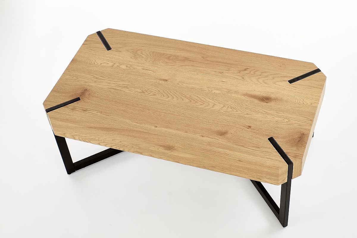 Industrieller Couchtisch mit goldener Eiche und schwarzem Stahl. .. mehr