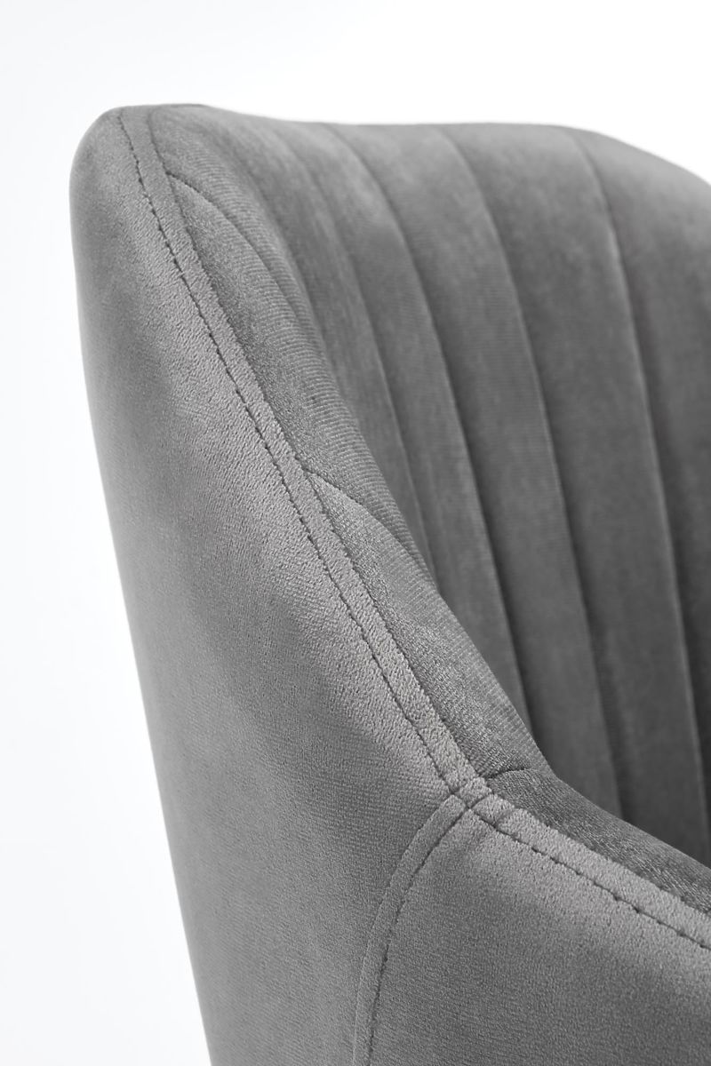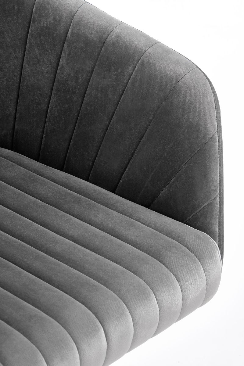 Sitzfläche und Rückenlehne sind mit einem angenehm gesteppten Samtstoff bezogen.