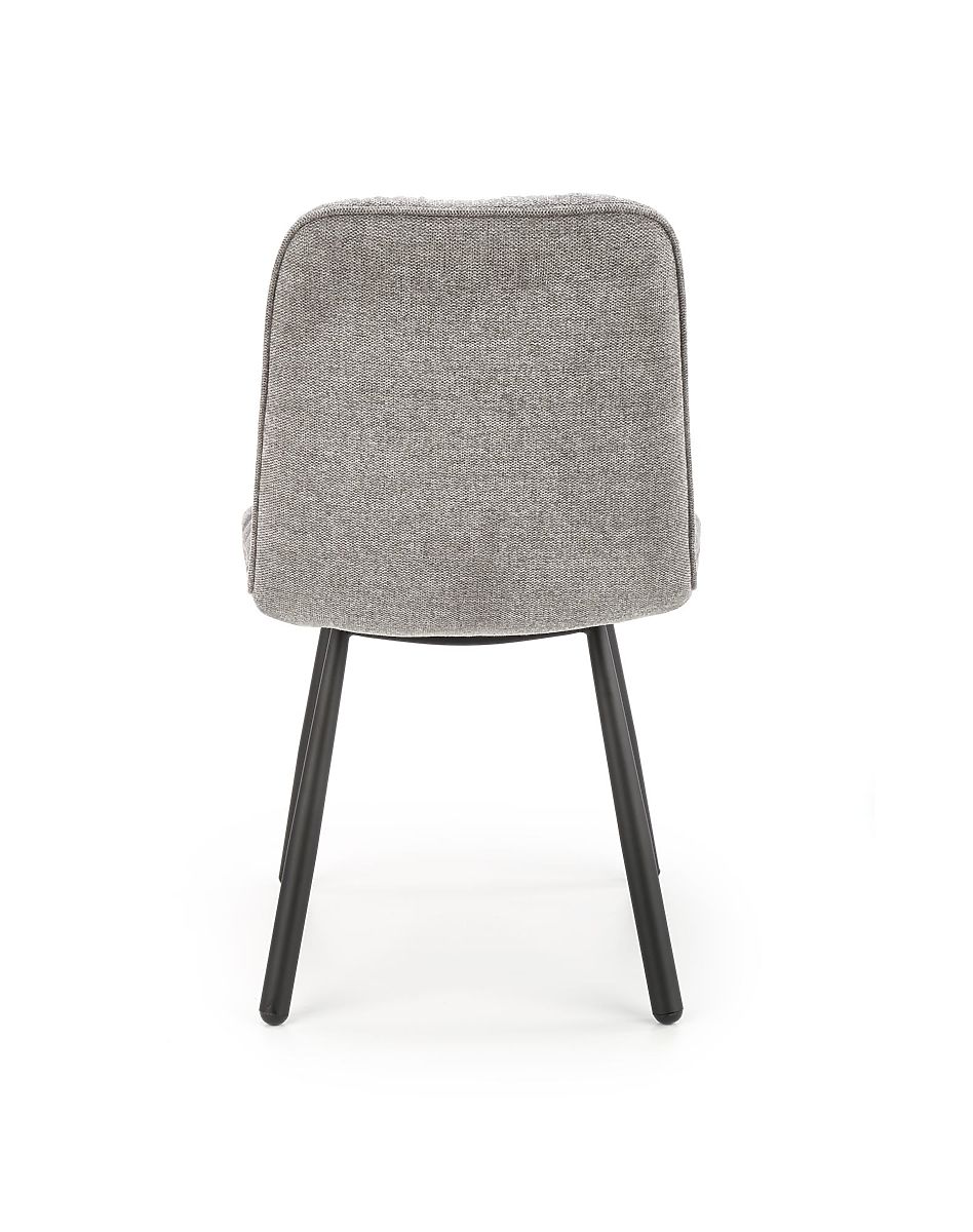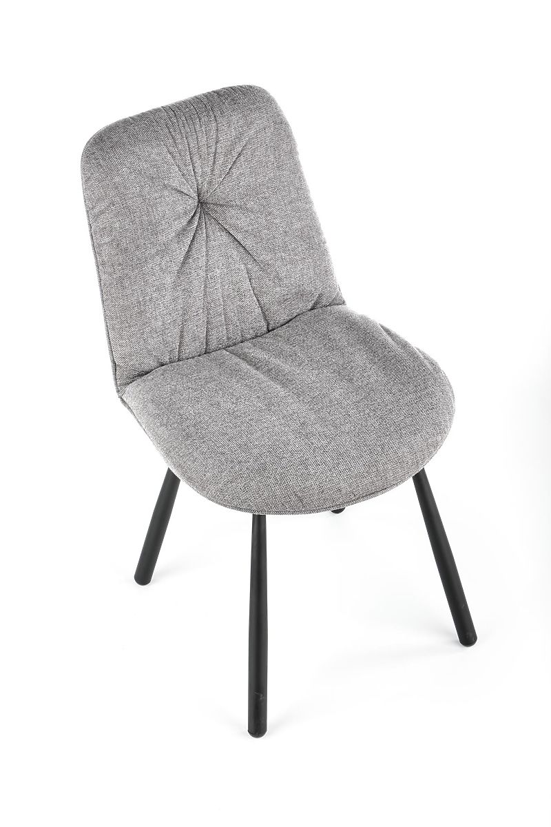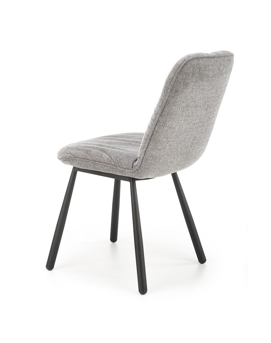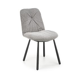 Sitz und Rückenlehne sind mit einem angenehmen grauen Stoff gepolstert. Das Gestell besteht aus schwarz pulverbeschichtetem Stahl.