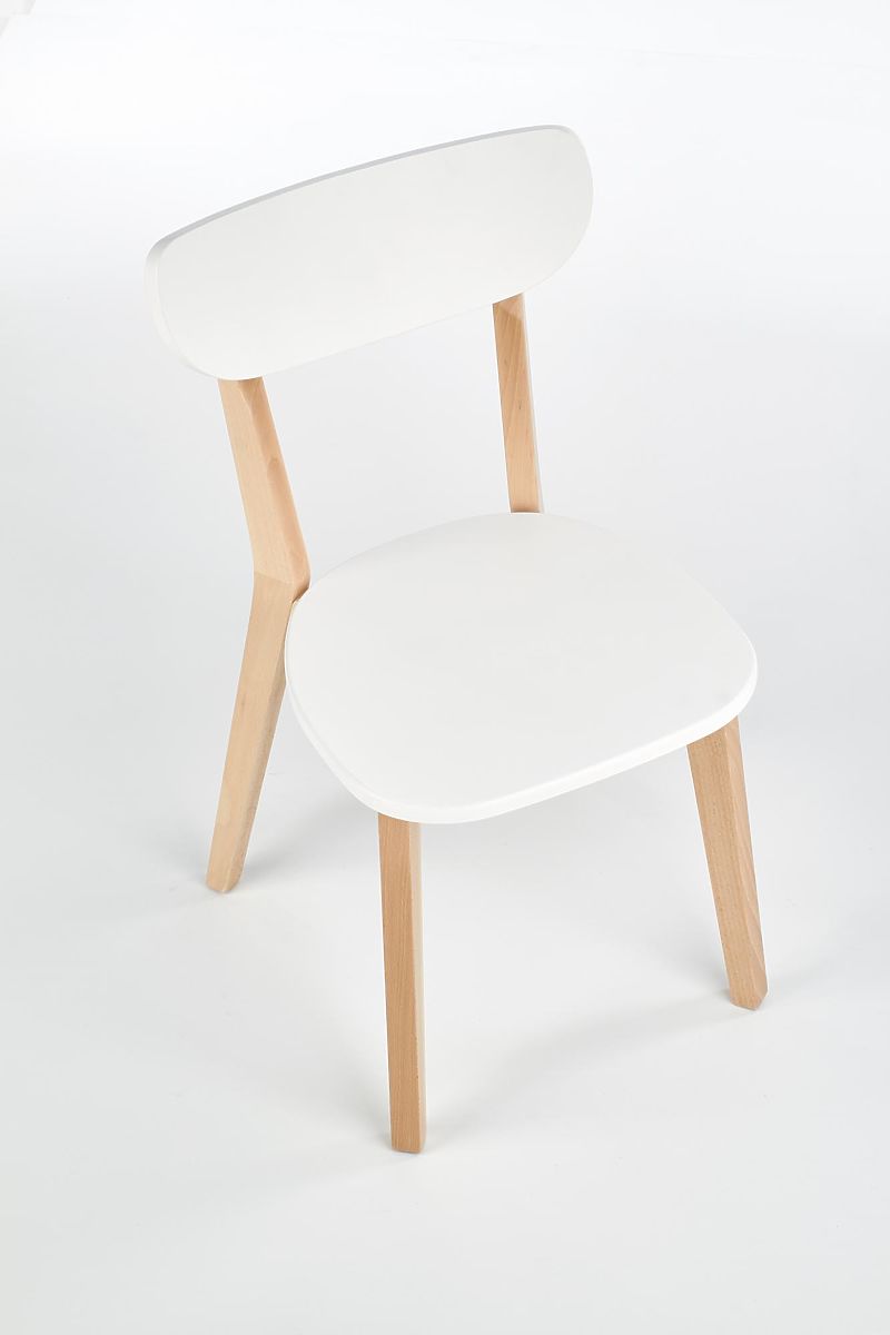 Zeitloser Esszimmerstuhl aus weißem MDF und massivem Buchenholz. .. mehr