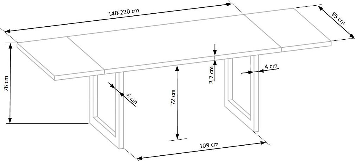 Der moderne ausziehbare Esstisch RADUS mit seinem minimalistischen Design passt in die meisten Esszimmer oder Küchen.