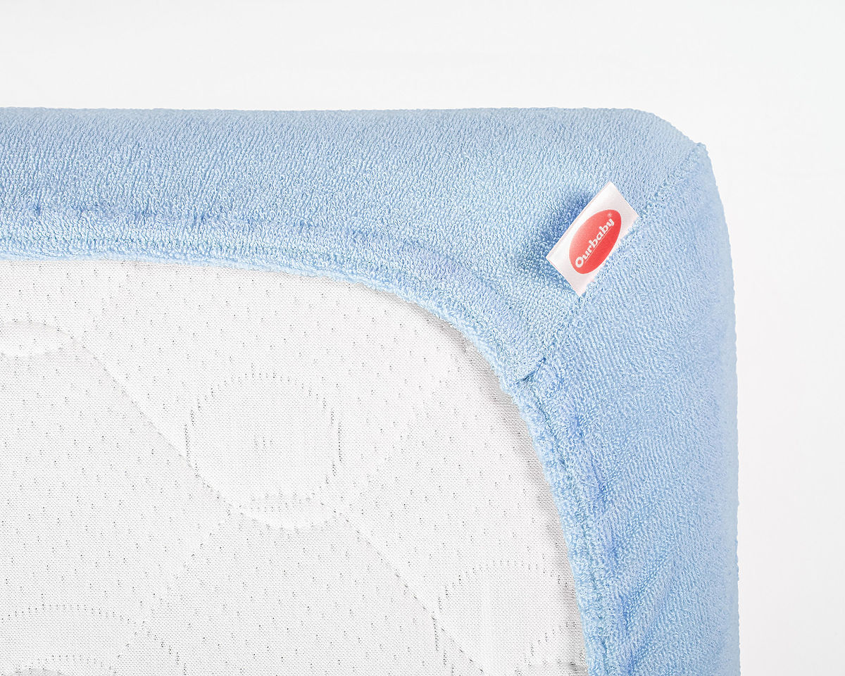 Frottee-Spannbettlaken in hellblauer Farbe . Beliebte Frotteebettlaken bieten hohen Komfort und Bequemlichkeit. Sie bestehen aus strapazierfähigem und pflegeleichtem Material mit einer sehr angenehmen Oberfläche.
