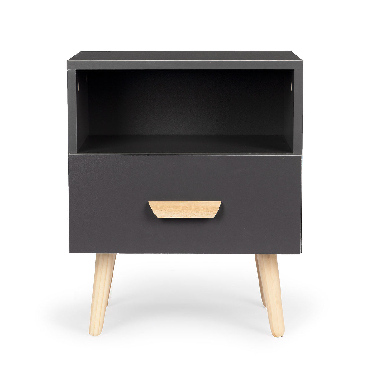 Der Schrank besteht aus einer geräumigen Schublade und einer Nische, in der Sie Bücher, Zeitschriften, Dokumente oder andere kleine Gegenstände aufbewahren können.