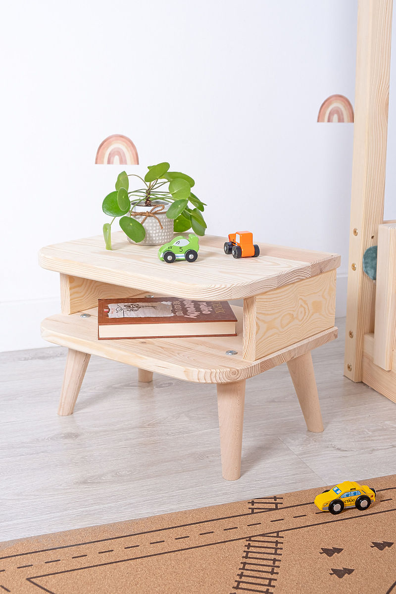 Der elegante Nachttisch aus der Ourbaby NELL-Kollektion aus hochwertigem Kiefernholz ist eine perfekte Ergänzung für das Kinderzimmer. Dieser Nachttisch bietet mehr als nur Stauraum. Mit einer praktischen Ablagefläche bietet es ausreichend Platz für Bücher, Uhren, Handys und andere persönliche Gegenstände.