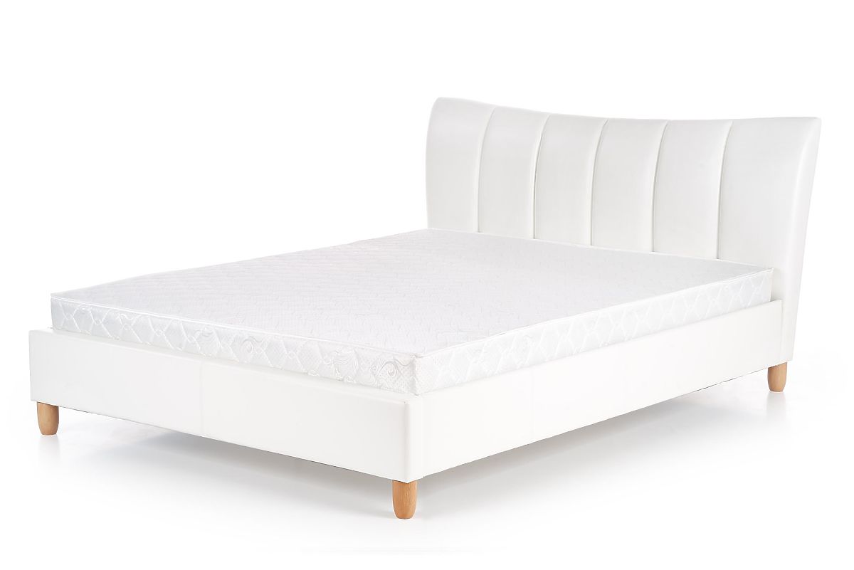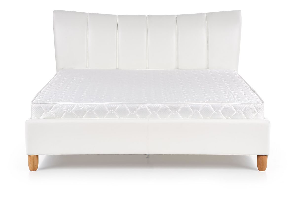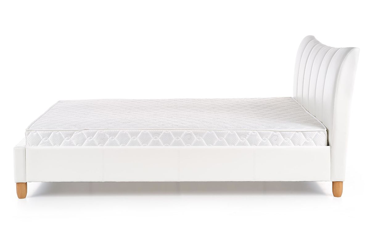 Das Bett steht auf runden Holzbeinen, die dem Gesamtdesign des Bettes eine natürliche und warme Note verleihen.