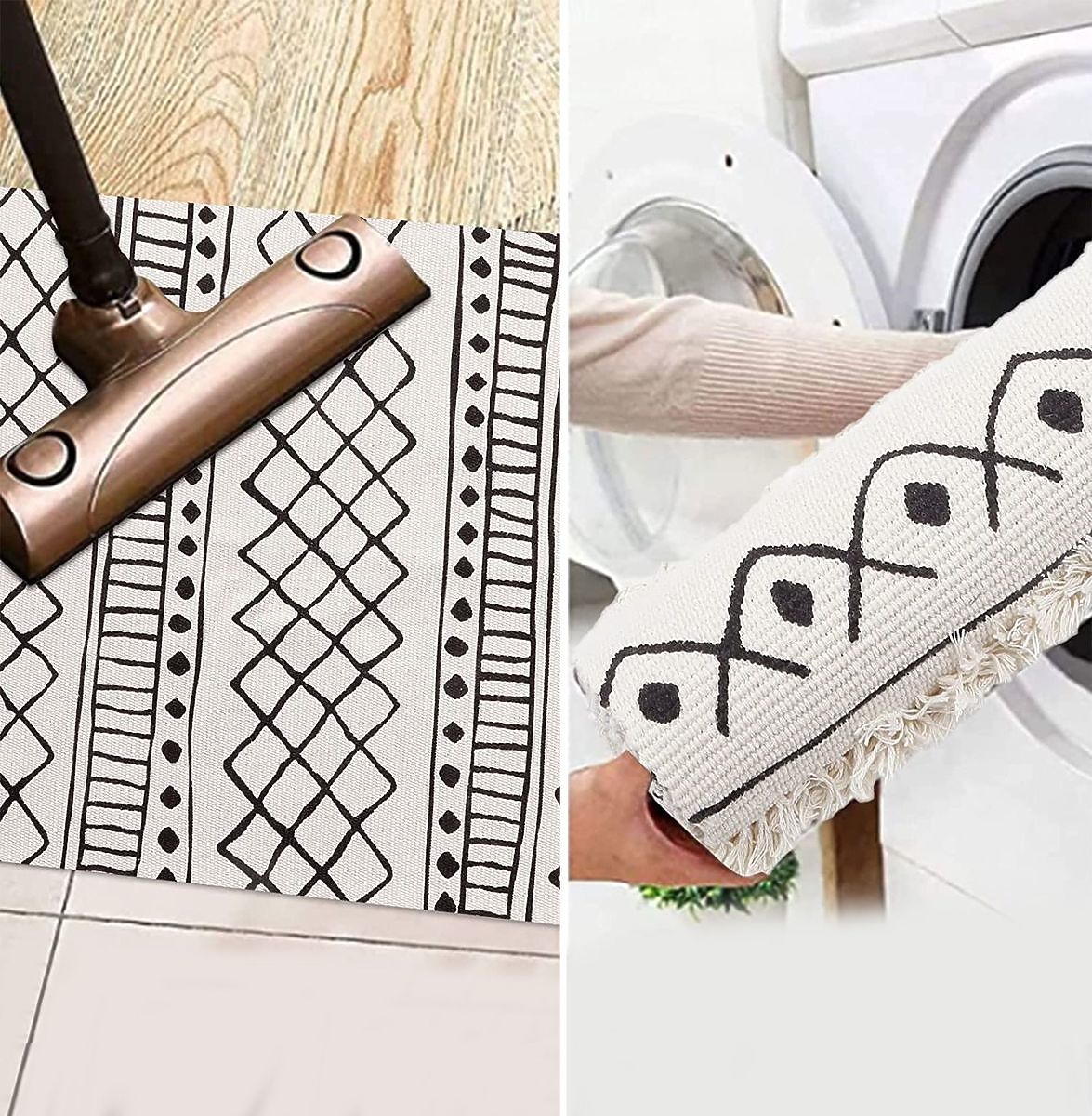 Koberec je vyrobený z bavlněných provázků. Jeho údržba je nenáročná a lze ho prát v pračce.