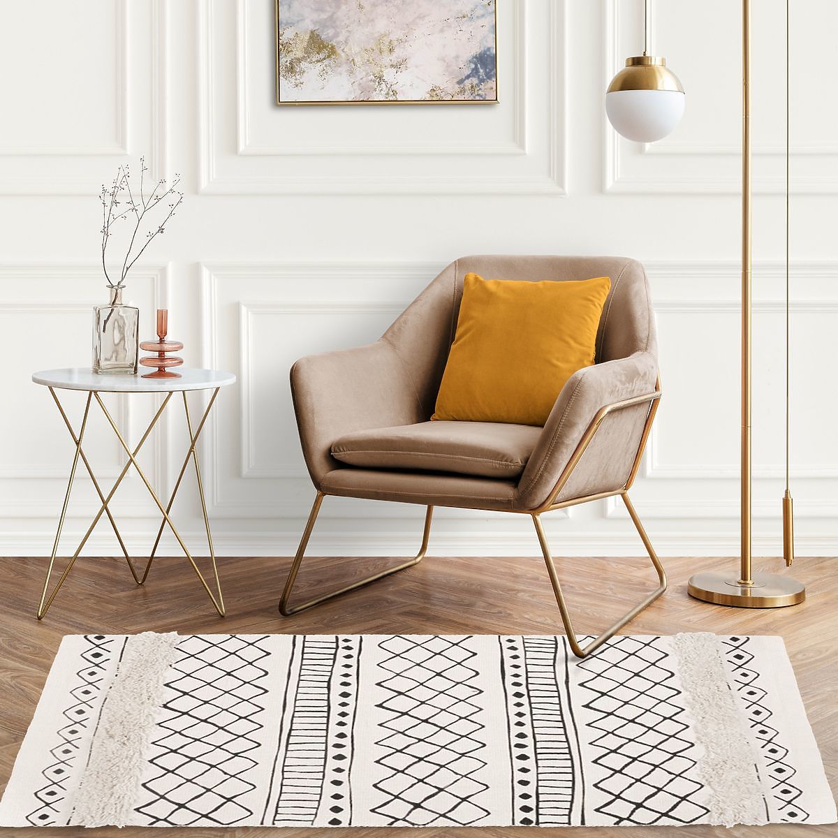 Hledáte stylový koberec do Vaši domácnosti? Koberec v BOHO stylu je tou pravou volbou, díky zajímavému černo-bílému aztéckému vzoru a modernímu obdélníkovému tvaru.