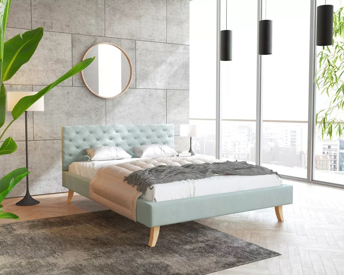 Das wunderschöne Polsterbett California in der Farbe Mint wird Sie mit zeitlosem Design, hoher Funktionalität und ansprechendem Design überraschen. Dieses bequeme Bett mit den Maßen 180 x 200 cm macht in jedem Schlafzimmer eine gute Figur.