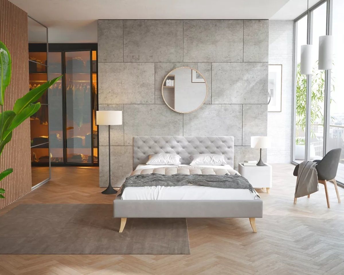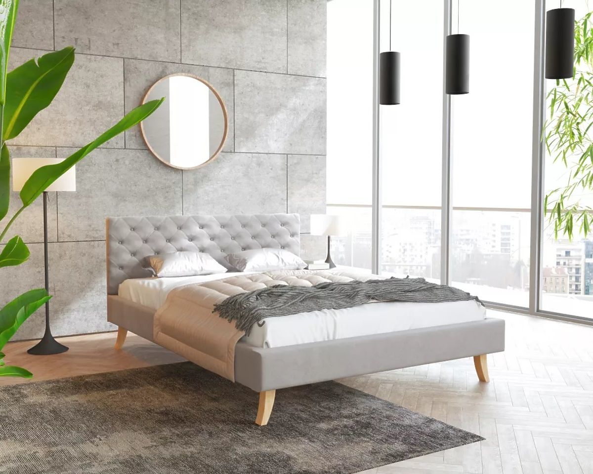 Die massiven Beine , auf denen das gesamte Bett steht, bestehen aus Buchenholz und sorgen dafür, dass das Bett an Ort und Stelle bleibt und keine unangenehmen Bewegungen verursacht. Sie tragen nicht nur zur Gesamtqualität des Bettes bei, sondern verleihen ihm auch ein elegantes und luxuriöses Aussehen.
