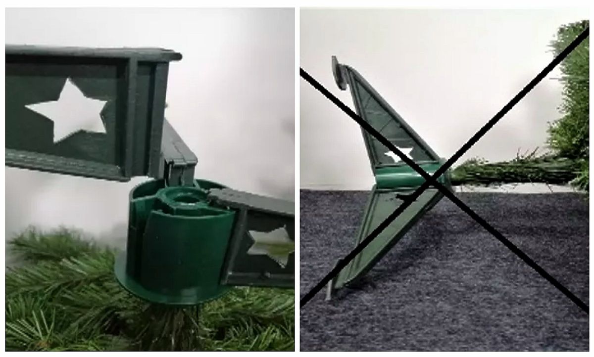 Der Weihnachtsbaum wird in einen Kunststoffständer gestellt, in den Sie lediglich die Beine stecken müssen. Es ist wichtig, den Ständer nicht im Liegen zusammenzuklappen, um mechanische Schäden am Produkt zu vermeiden. Der Zusammenbau des Tannenbaums ist sehr einfach, allerdings ist es notwendig, besonders auf die Zweige zu achten, damit diese optimal verteilt und modelliert werden, um den bestmöglichen Effekt zu erzielen. Es besteht die Möglichkeit, es nach eigenen Vorstellungen zu modellieren. Bei der Demontage ist es notwendig, die Zweige vorsichtig an den Baumstamm zurückzuklappen.