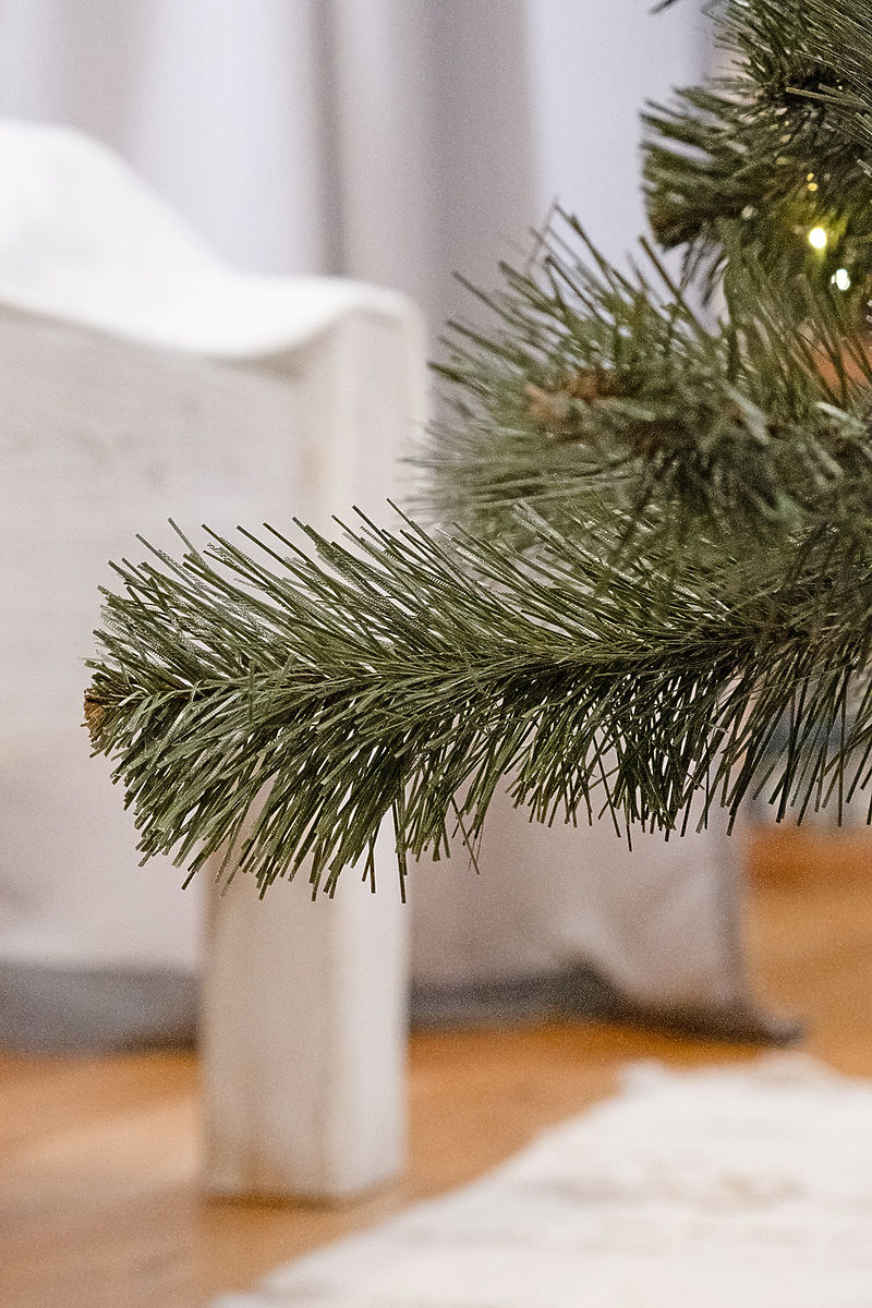 Die Tanne hat 295 Zweige , die eine metallische Basis und lange Nadeln von dunkel- und mittelgrüner Farbe haben. Dabei wurde auf die Verflechtung brauner Nadeln im Kern des Zweiges zurückgegriffen, was ihm ein sehr natürliches Aussehen verleiht. Es erscheinen auch feine weiße Nadeln.