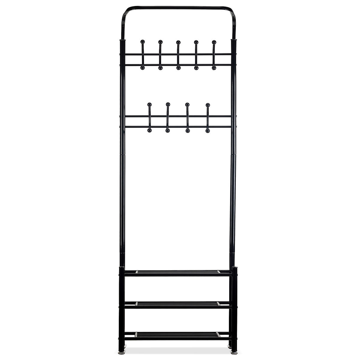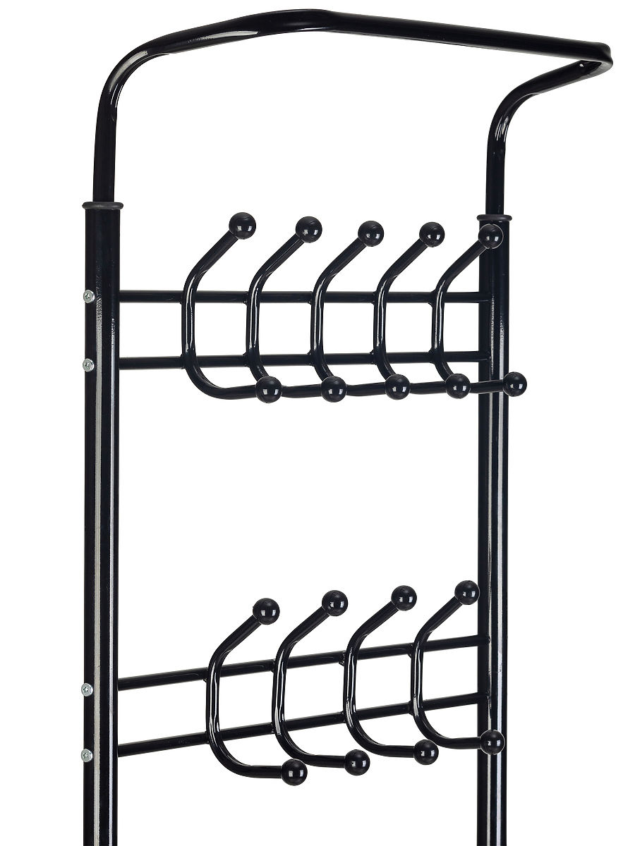 Im oberen Teil befinden sich zwei Reihen mit 18 Kleiderbügeln . Dank der großen Anzahl an Haken eignen sie sich perfekt für Umkleidekabinen, Büros oder Wartezimmer.