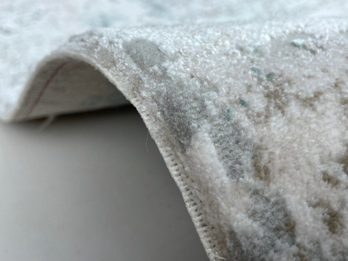 Jedes Stück wird ohne Nähgarn präzise verarbeitet , was ein Merkmal der höheren Serien von Stückteppichen ist. Durch die zwei Schnitthöhen entsteht ein interessanter 3D-Effekt.