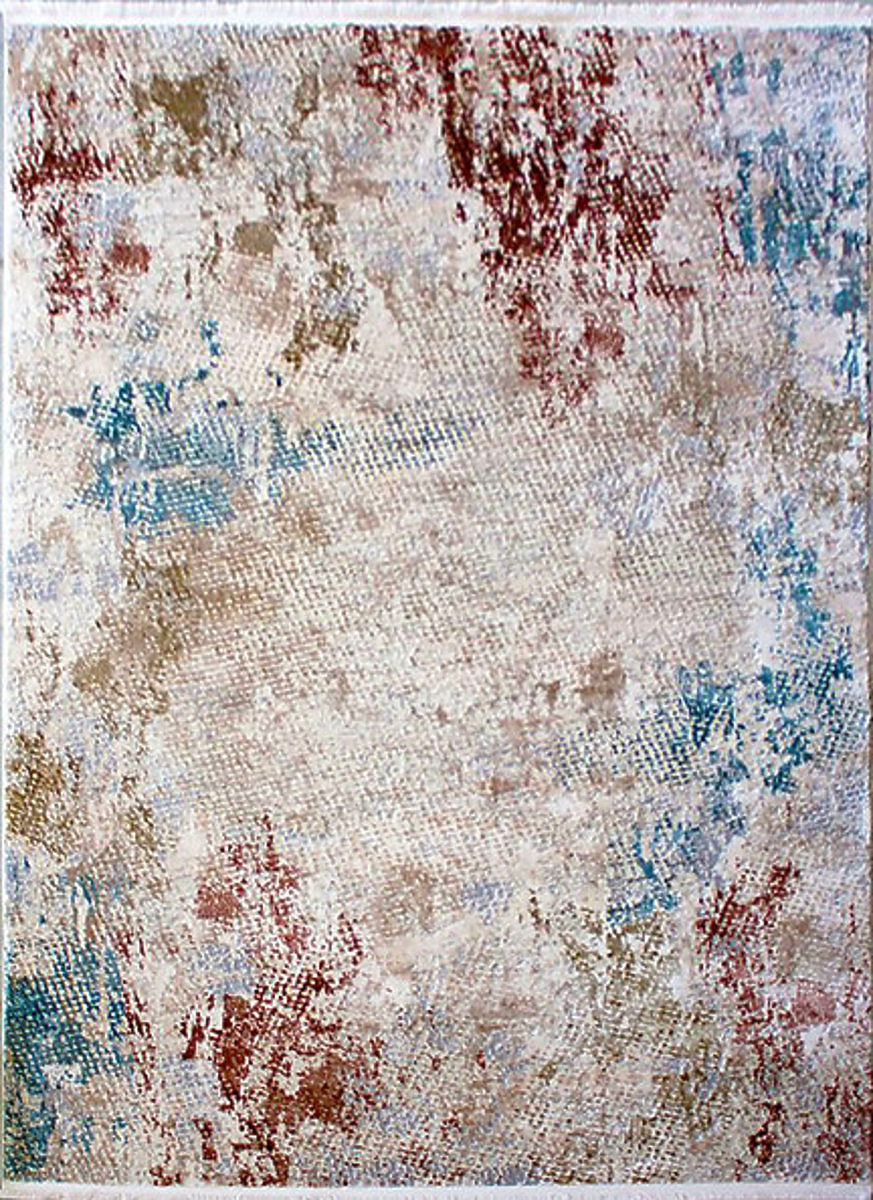Der hellbeige Hintergrund des Teppichs, ergänzt durch vereinzelte Ziegel- und Azurtöne, ergibt ein harmonisches Ganzes , das Ihrem Interieur einen Hauch von Eleganz verleiht.