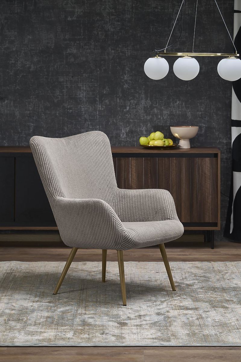 Der gepolsterte Sessel Amaro ist die ideale Wahl für alle, die eine Kombination aus Komfort und Eleganz suchen. Grauer Cord verleiht dem Stuhl ein weiches und .. mehr