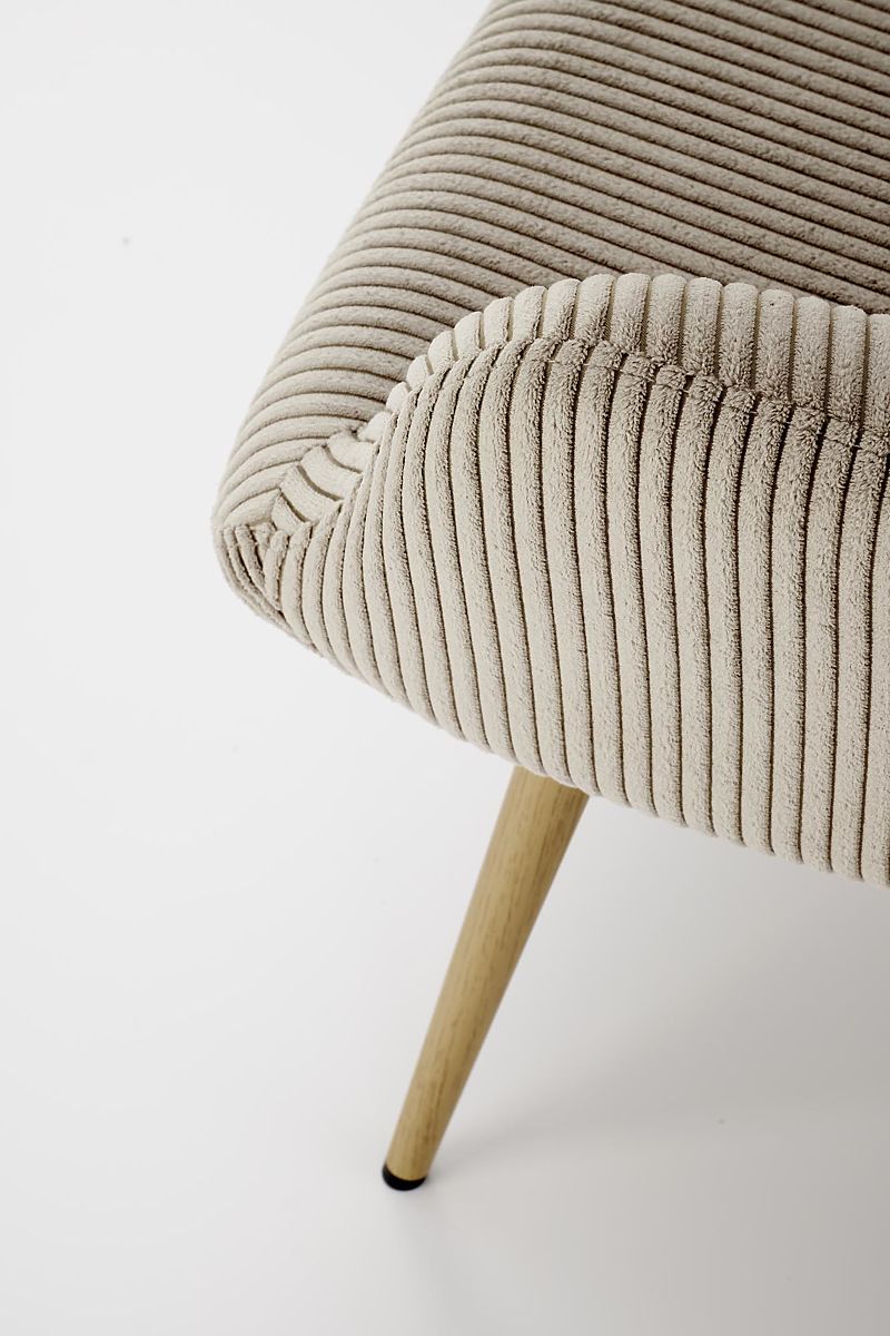 Grauer Cord verleiht dem Stuhl ein weiches und edles Aussehen. Dieser Stoff fühlt sich nicht nur angenehm an, sondern ist auch langlebig und pflegeleicht und sorgt so für eine lange Lebensdauer Ihres Stuhls.