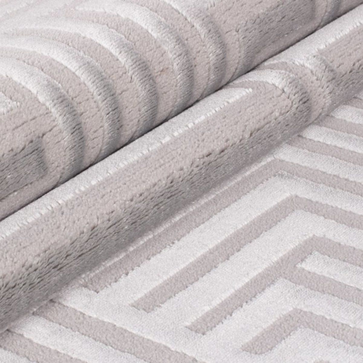 Der silberne Teppich Sahara ist Teil der Kollektion moderner Teppiche mit luxuriösem 3D-Effekt. Ihr flauschiges Design und die plüschige Oberfläche sorgen für .. mehr