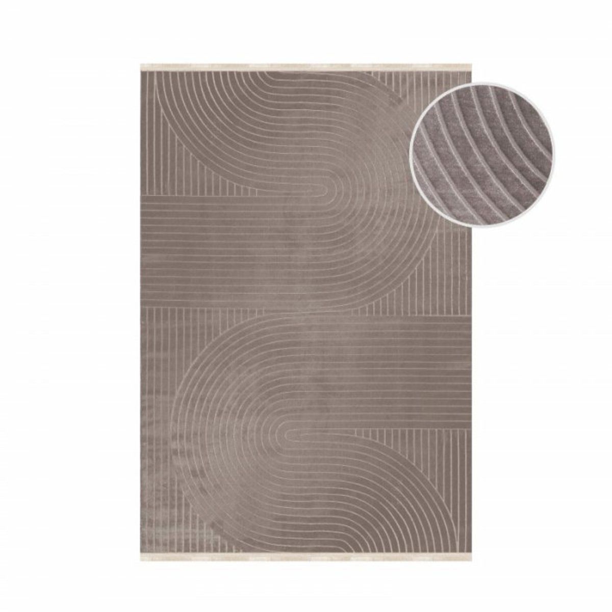 Dieser einteilige Teppich Style im braunen Design vereint präzise Linien mit eleganten Formen . Jeder Teppich ist die Verkörperung eines Meisterwerks, bei dem plastisch geschnittene Haare einer Farbe eine Tiefenwirkung erzeugen und dominante Muster und Motive hervorheben. Die Bahnen über den Teppich verleihen dem Design Dynamik und Lebendigkeit , während ihre Weichheit und Bequemlichkeit für luxuriösen Komfort sorgen. Helle Naturtöne und das Motiv der Bögen machen diese Teppiche zu einer perfekten Ergänzung für Wohnzimmer , Liebhaber von Eleganz und einer frischen Atmosphäre werden sie lieben. Und dank ihrer Praktikabilität eignen sie sich auch ideal für Räume mit Fußbodenheizung.