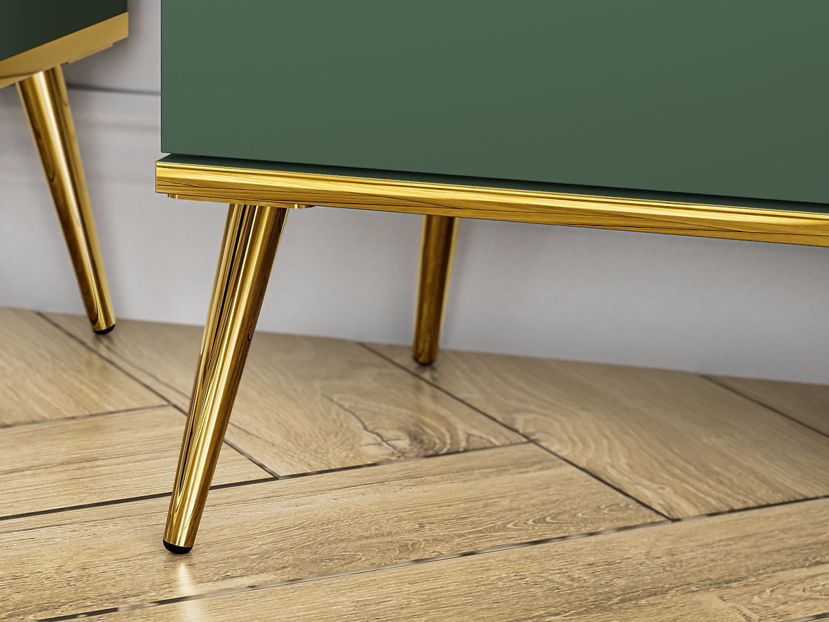 Der schöne TV-Ständer Forest ist nicht nur ein ästhetisch beeindruckendes Möbelstück, sondern auch sehr praktisch. Dank des großen Stauraums bietet er ausreichend Platz für diverse elektronische Geräte, Bücher oder andere Dinge. Das einzigartige Design und die Farbkombination aus Dunkelgrün und Gold bringen Eleganz, Ruhe und Harmonie in Ihr Zuhause. Es passt perfekt in ein modernes Interieur sowie zum Wohnen im Retro-Stil.