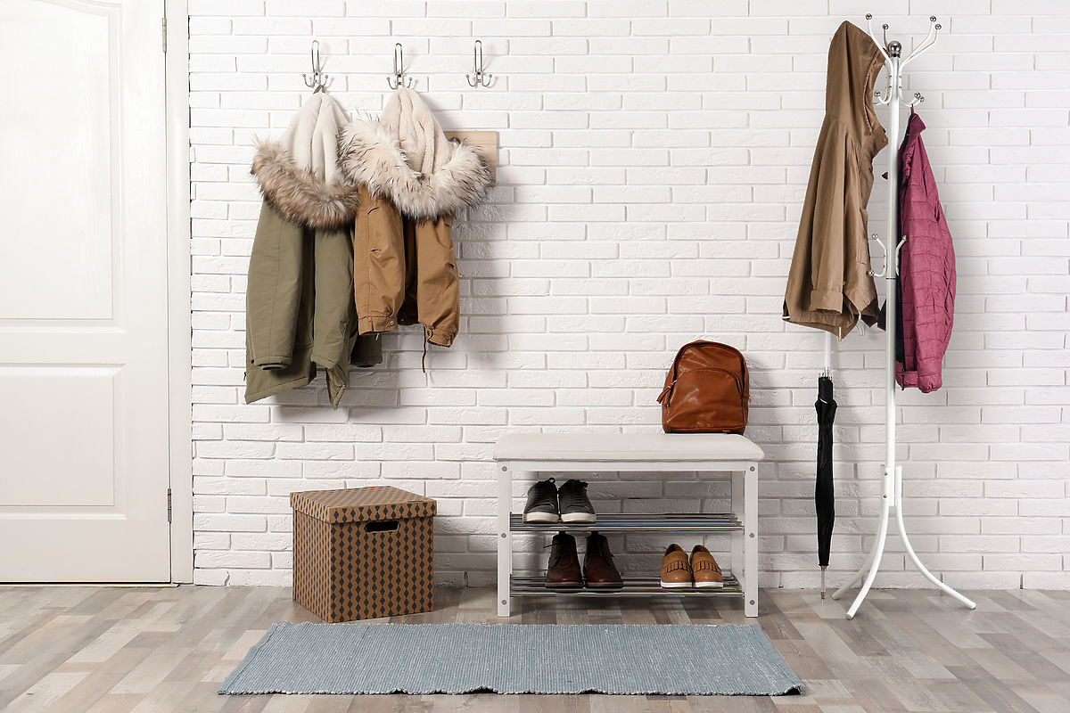 KLEIDERSTÄNDER ModernHomeDer Ständer hat oben fünf Arme, an jedem zwei Plätze zum Aufhängen von Kleidung. In der Mitte des Ständers befinden sich drei weitere, kleine Arme zum Aufhängen von Handtaschen, Regenschirmen und kleineren Kleidungsstücken. Dank der speziellen dreifachen Basis bleibt der Ständer auch bei hoher Belastung stabil.