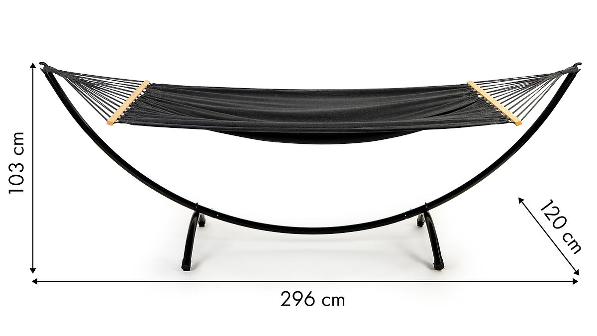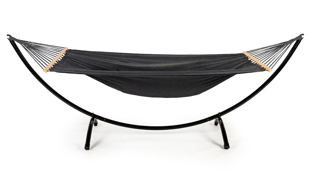 Bequeme Hängematte mit stabilem Gestell für Garten und Terrasse. .. mehr