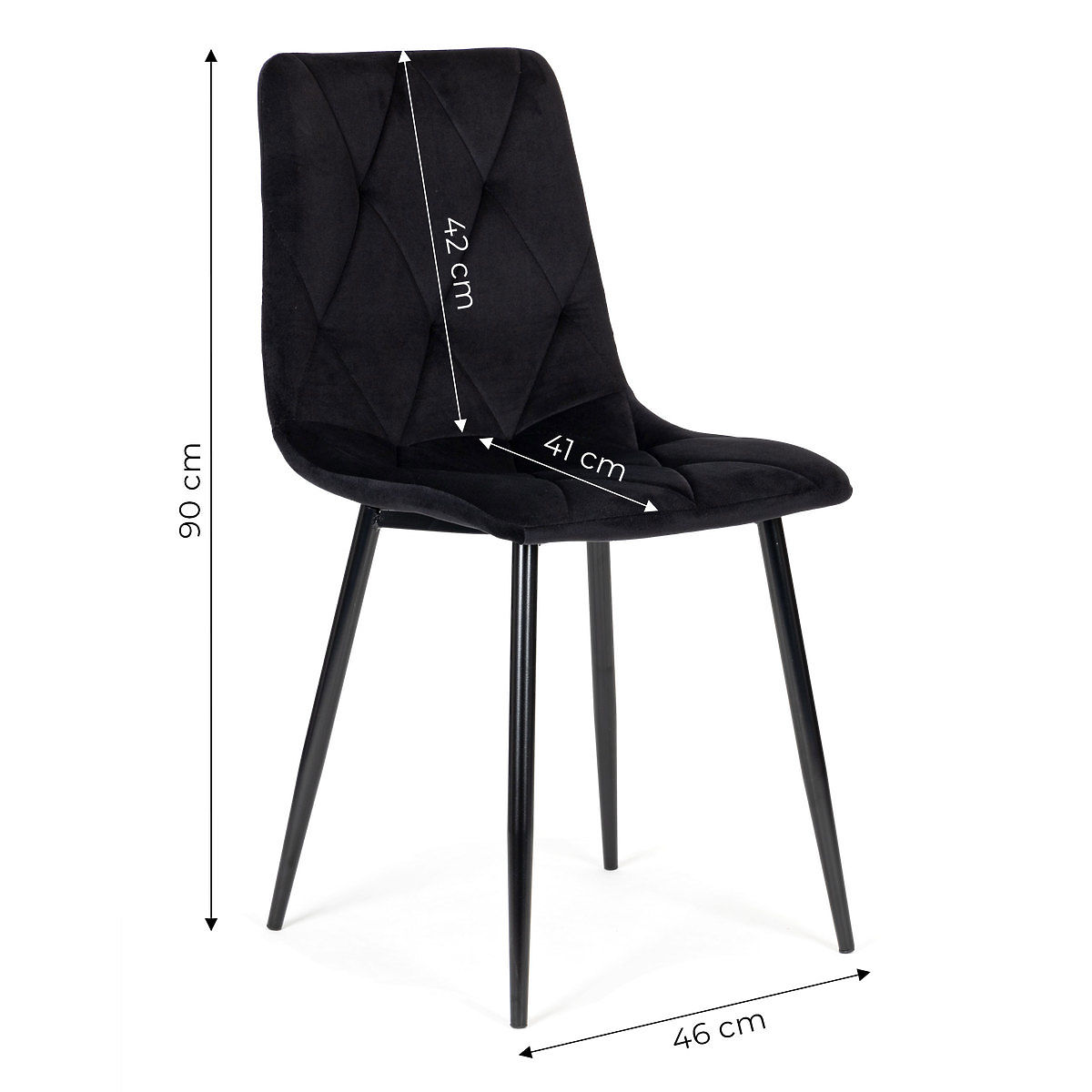Die Stühle passen perfekt zum Familientisch in Ihrem Esszimmer, Wohnzimmer oder Ihrer Küche. Die schwarzen Bezüge bestehen aus angenehmem und strapazierfähigem Samt und ihre schlichte Form sorgt dafür, dass sie sich perfekt in den Raum des Wohnzimmers, Esszimmers, aber auch Büros oder Restaurants einfügen. Modernes Design und die ästhetische Kombination aus Samt und Metall bilden ein Set für die anspruchsvollsten Benutzer.