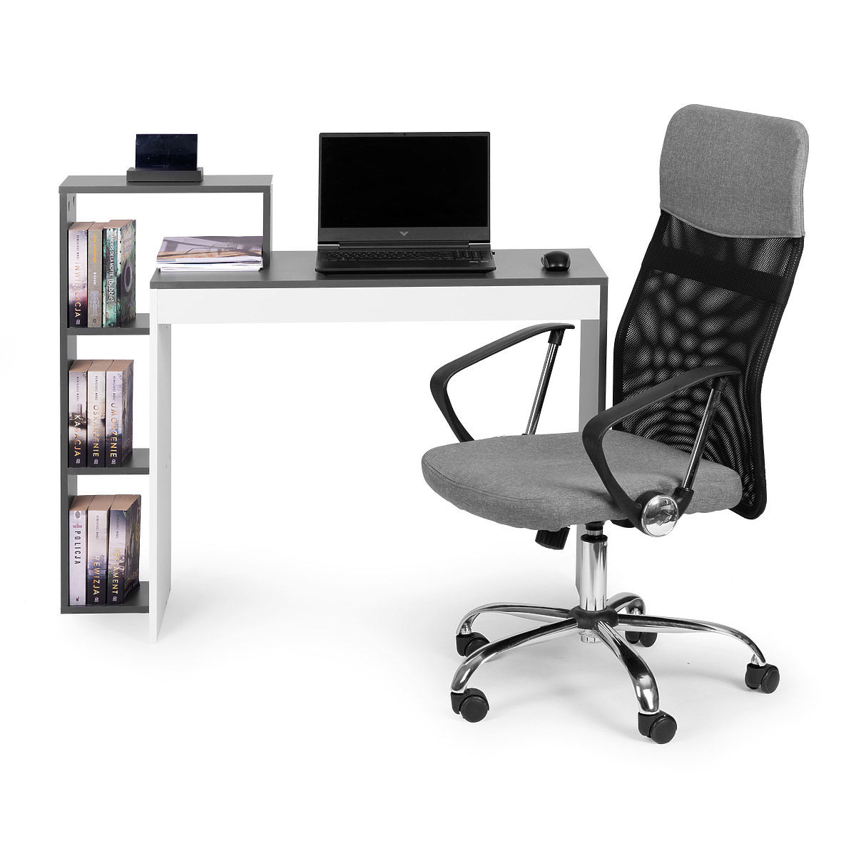 Lukahome.at » Tische und Couchtische / Schreibtische / Weiß-grauer Büroschreibtisch + Regal mit 4 Regalböden