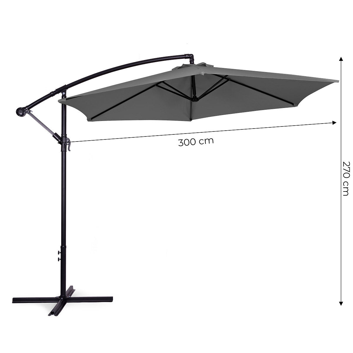 Lukahome.at » Gärten / Sonnenschirme und Sonnensegel / Großer klappbarer Gartensonnenschirm mit Ausleger 3m grau 6 Rippen
