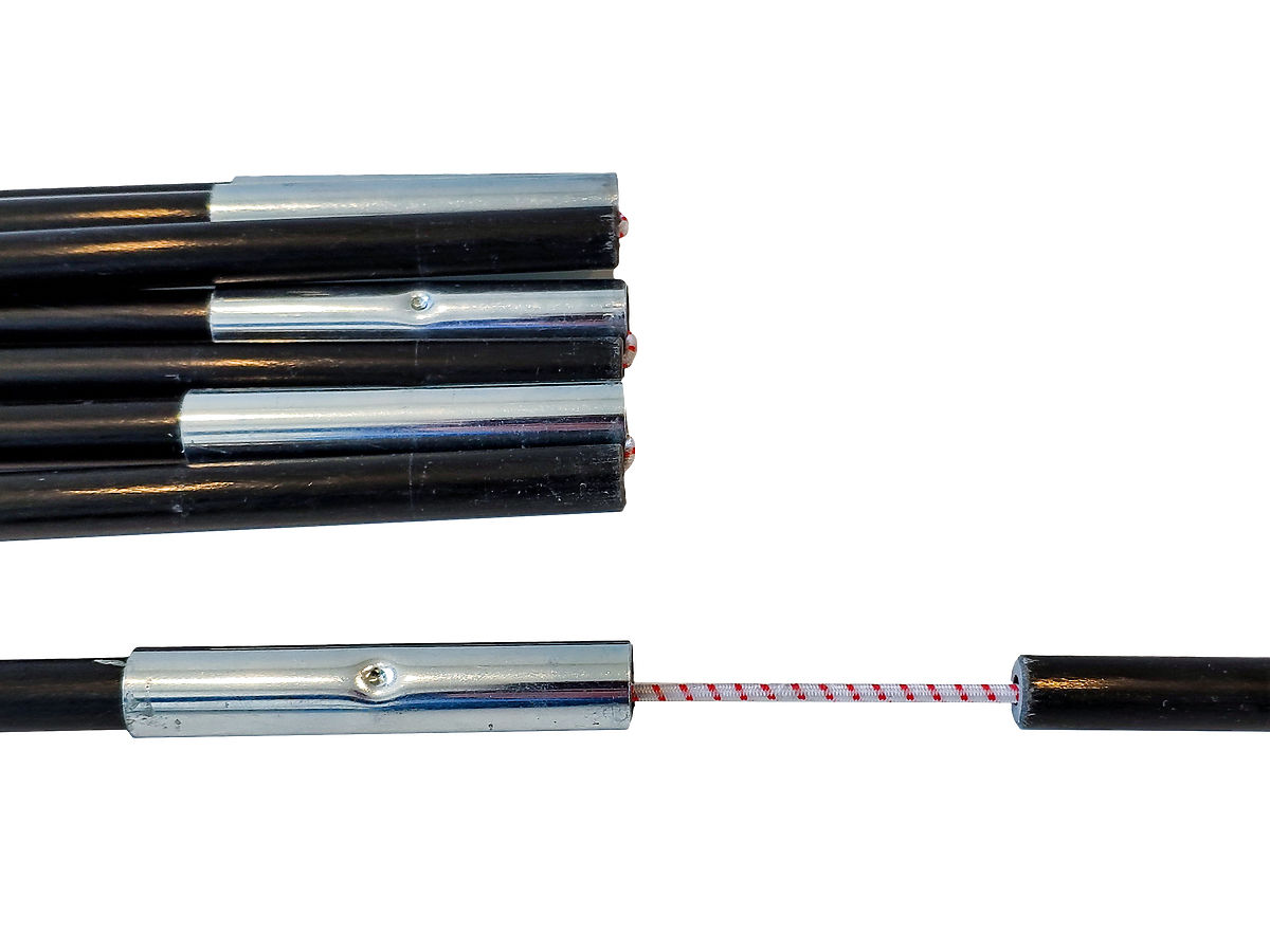 Die Pavillonkonstruktion besteht aus kreuzweise verbundenen Rohren aus Laminat, wodurch sie leicht und widerstandsfähig ist.