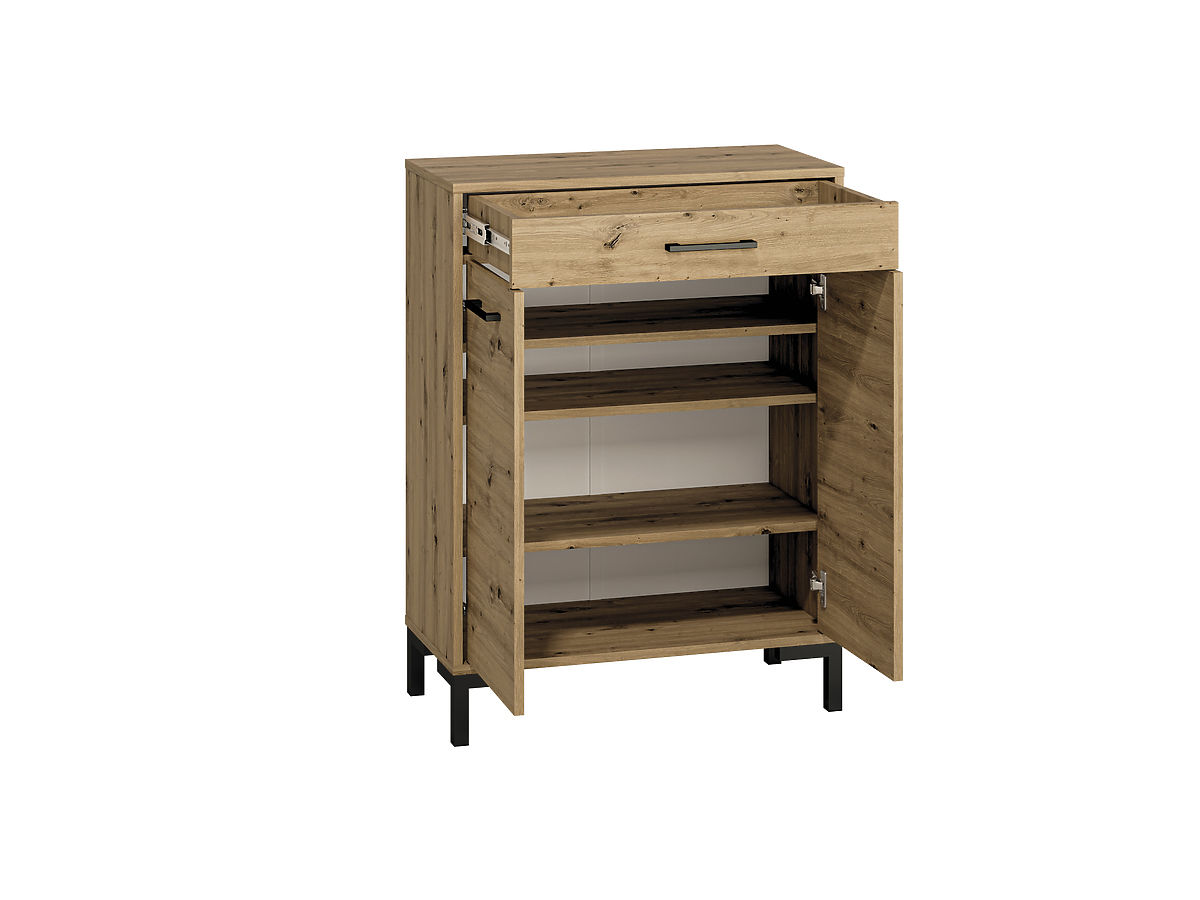 Der Schuhschrank Nevio ist die ideale Lösung für die elegante und stilvolle Aufbewahrung Ihrer Schuhe. Das Eichendekor verleiht dem Schrank eine angenehme natürliche Optik, die perfekt in moderne und traditionelle Innenräume passt. Diese elegante und praktische Ergänzung für Ihren Flur mit viel Stauraum ermöglicht es Ihnen, Ihre Schuhe zu organisieren und Ihren Eingangsbereich sauber und ordentlich zu halten.