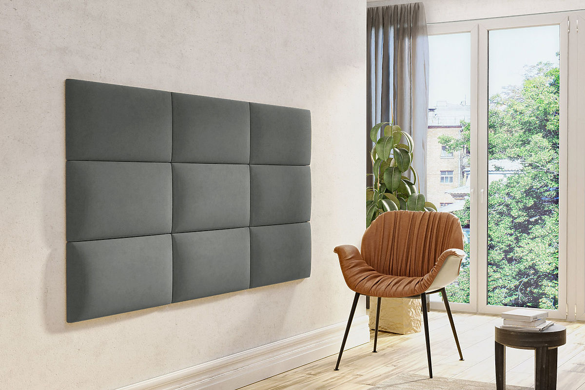 Die Klassik-Polsterpaneele in Graphitfarbe sind in drei verschiedenen Größen erhältlich: