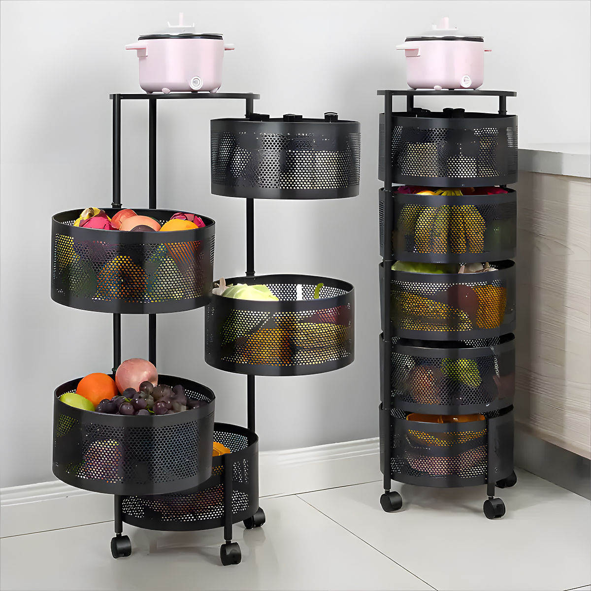 Küchenregal mit drehbaren Regalböden aus Metall für optimale Raumnutzung. .. mehr