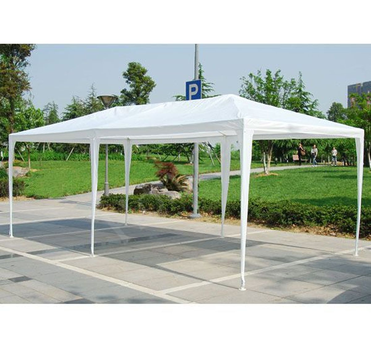 ROBUSTE KONSTRUKTIONDas Gestell des Zeltes besteht aus starken, pulverbeschichteten Metallrohren mit einem Durchmesser von 32/25/25 mm, was Stabilität und Korrosionsbeständigkeit gewährleistet. Die solide Konstruktion garantiert Langlebigkeit auch bei intensivem Gebrauch. Jedes Bein des Zeltes ist mit Heringen am Boden befestigt, was seine Stabilität erhöht. Das Dach und die Wände bestehen aus strapazierfähigem und wetterfestem Polyethylen mit einem Gewicht von 100 g/m2 in elegantem Weiß.