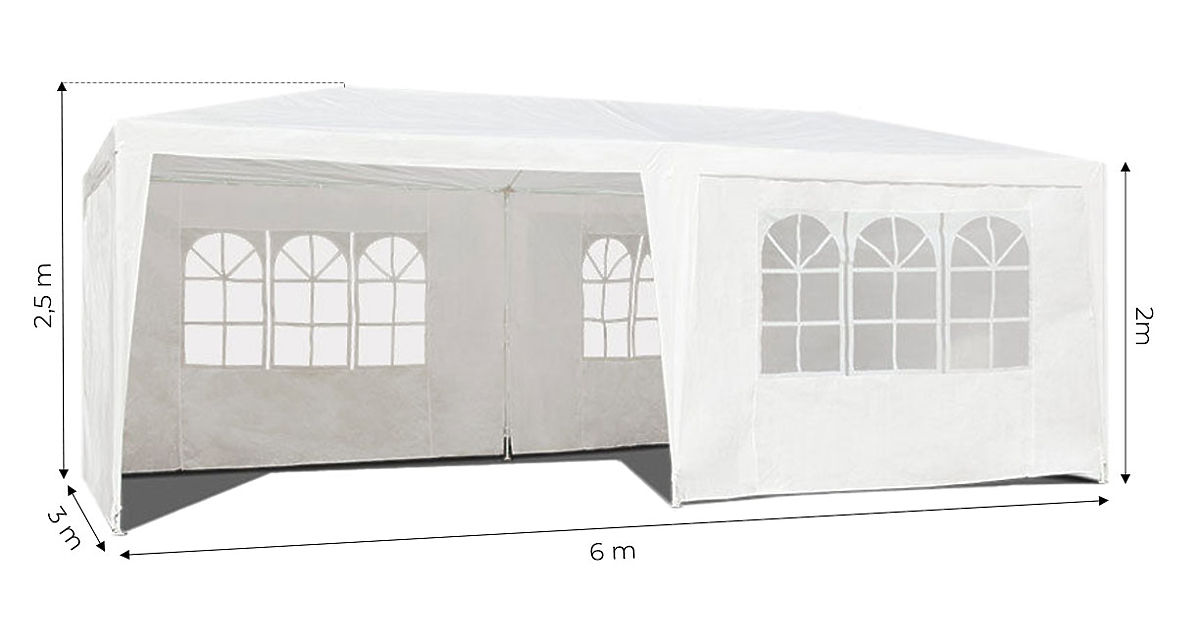 Der Gartenpavillon MultiGarden verwandelt ihren Garten in einen idealen Ort für besondere Treffen. Dank der großzügigen Abmessungen von 3x6x2,5 m bietet er komfortablen Raum für die Organisation von Outdoor-Events wie Bankette, Hochzeiten, Taufen, Familientreffen im größeren Kreis. Der Pavillon schützt effektiv vor Sonne und Regen, schafft eine gemütliche Atmosphäre, in der Sie und Ihre Gäste die gemeinsame Zeit unabhängig vom Wetter genießen können. Die großen Abmessungen garantieren volle Freiheit für Ihre Gäste, und korrekt montierte Wände schaffen eine belüftete, schattige Zone im Garten.