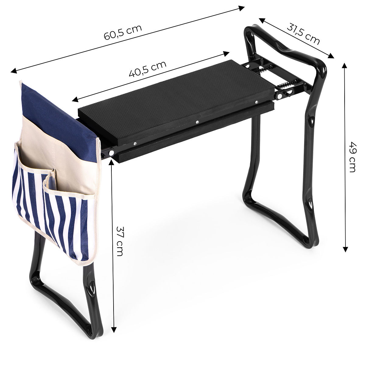 ROBUSTER STAHLRAHMENDer Kniehocker kann schnell seine Größe ändern, was die Lagerung auch in kleinen Räumen ermöglicht. Sein geringes Gewicht und seine Maße ermöglichen den Transport an jeden Ort in unserem Garten.