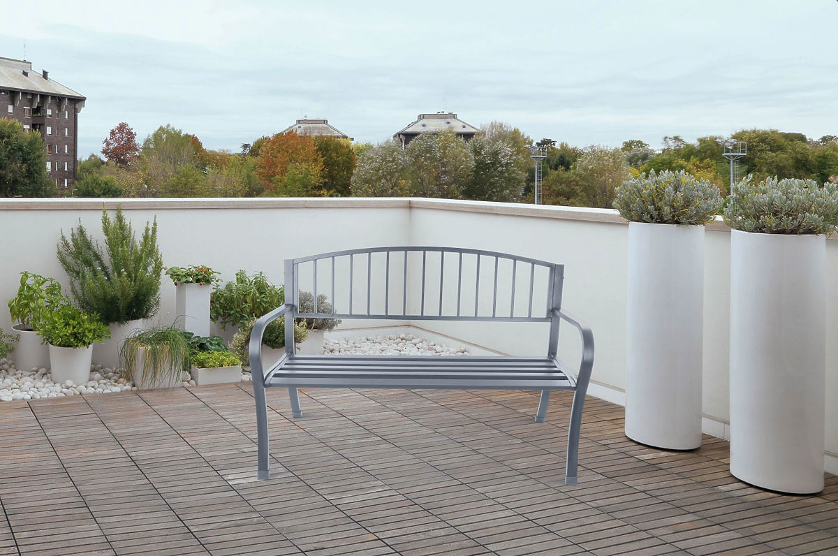 LANGLEBIGKEIT FÜR VIELE JAHREDie Stahlkonstruktion der Bank wurde mit einer spezialbeschichteten Schutzschicht überzogen, die effektiv Rostbildung verhindert und die Oberfläche vor mechanischen Beschädigungen schützt. Dadurch ist das Möbelstück feuchtigkeitsbeständig, UV-beständig und wetterfest, was sein ästhetisches Aussehen und seine Funktionalität über viele Jahre hinweg gewährleistet.