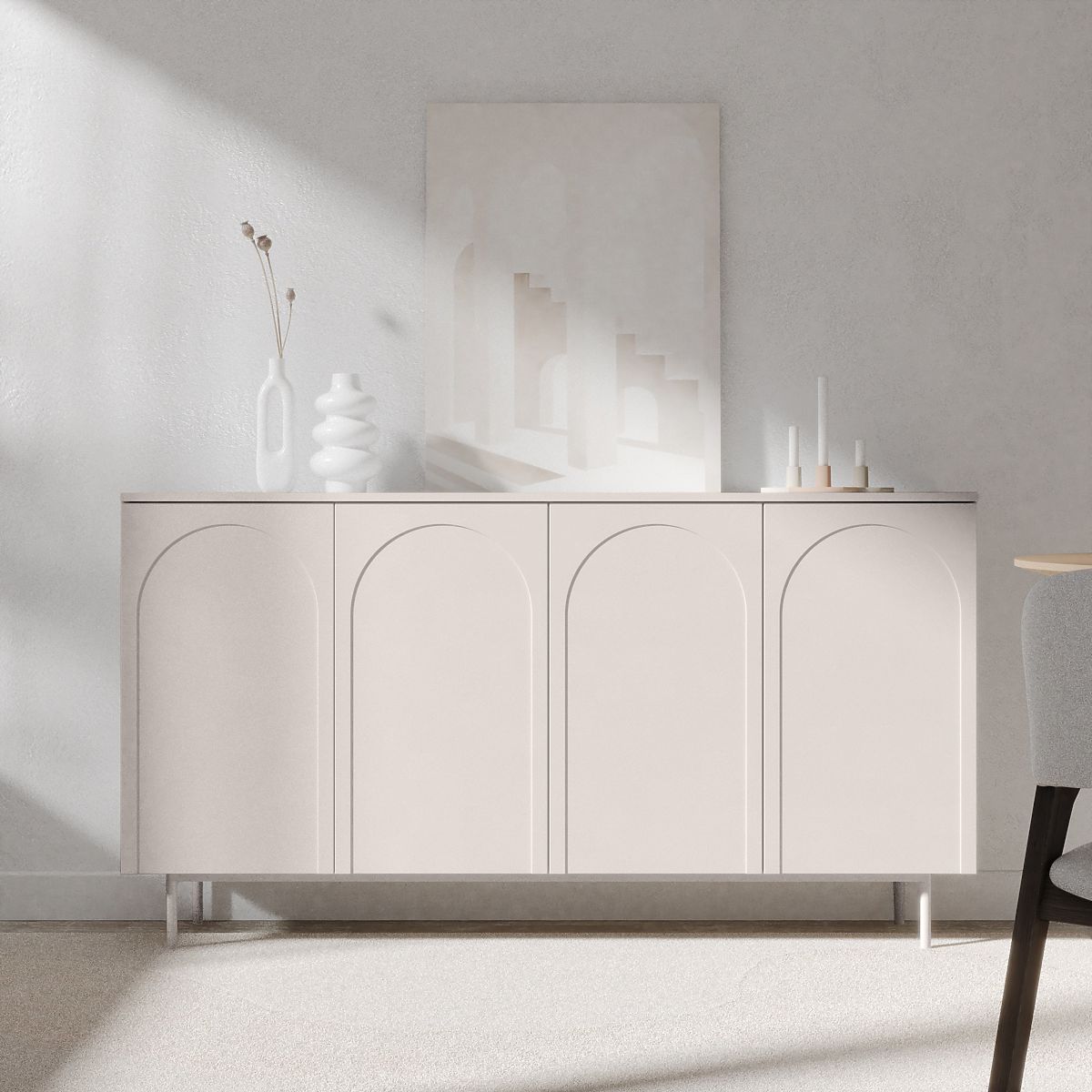 Kommode Helene mit dekorativen Fräsungen und Push-to-Open-System. .. mehr