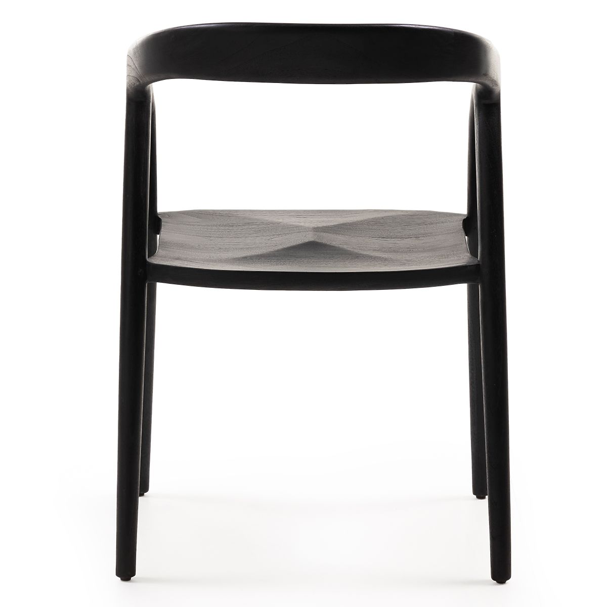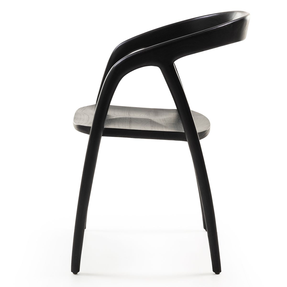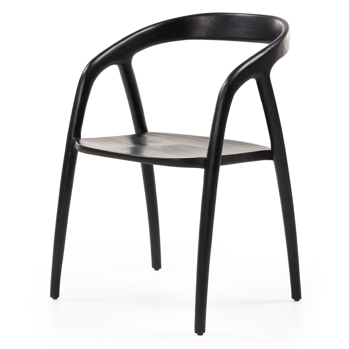 Abgerundeter Esszimmerstuhl aus schwarzem Teakholz. .. mehr