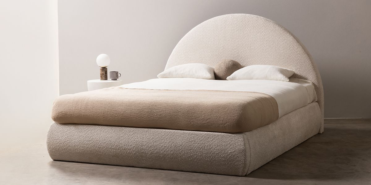 Gepolstertes Bett Orbi mit Stauraum und abgerundetem Kopfteil. .. mehr