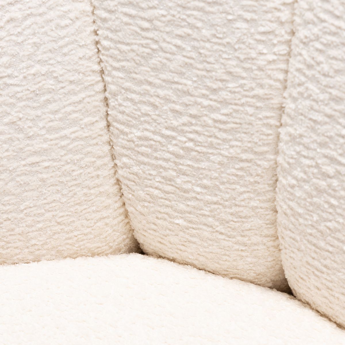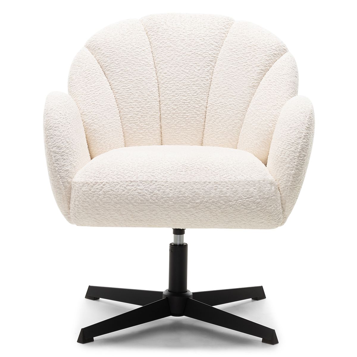 Drehstuhl mit weichem Bouclé-Stoff und drehbarer Basis. .. mehr