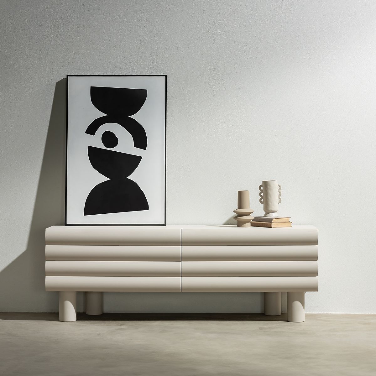 Lukahome.at » Tische und Couchtische / TV-Ständer / TV-Schrank Anatra, geriffelt, beige, abgerundete Formen