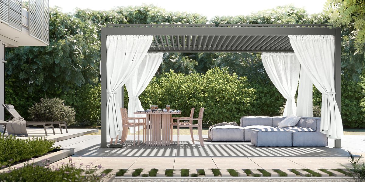 Vorhang für Pergola Antilla schützt vor UV-Strahlung und bietet Privatsphäre. .. mehr