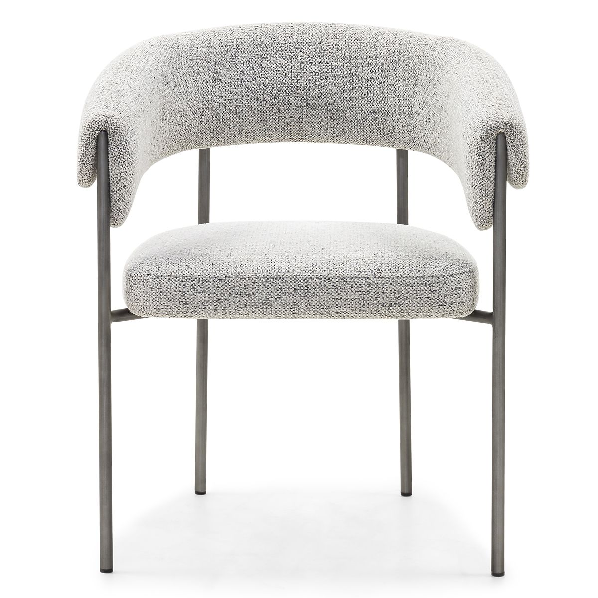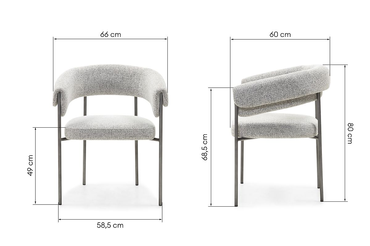 Gepolsterter Stuhl Portia mit grauem Stoff und Metallkonstruktion. .. mehr