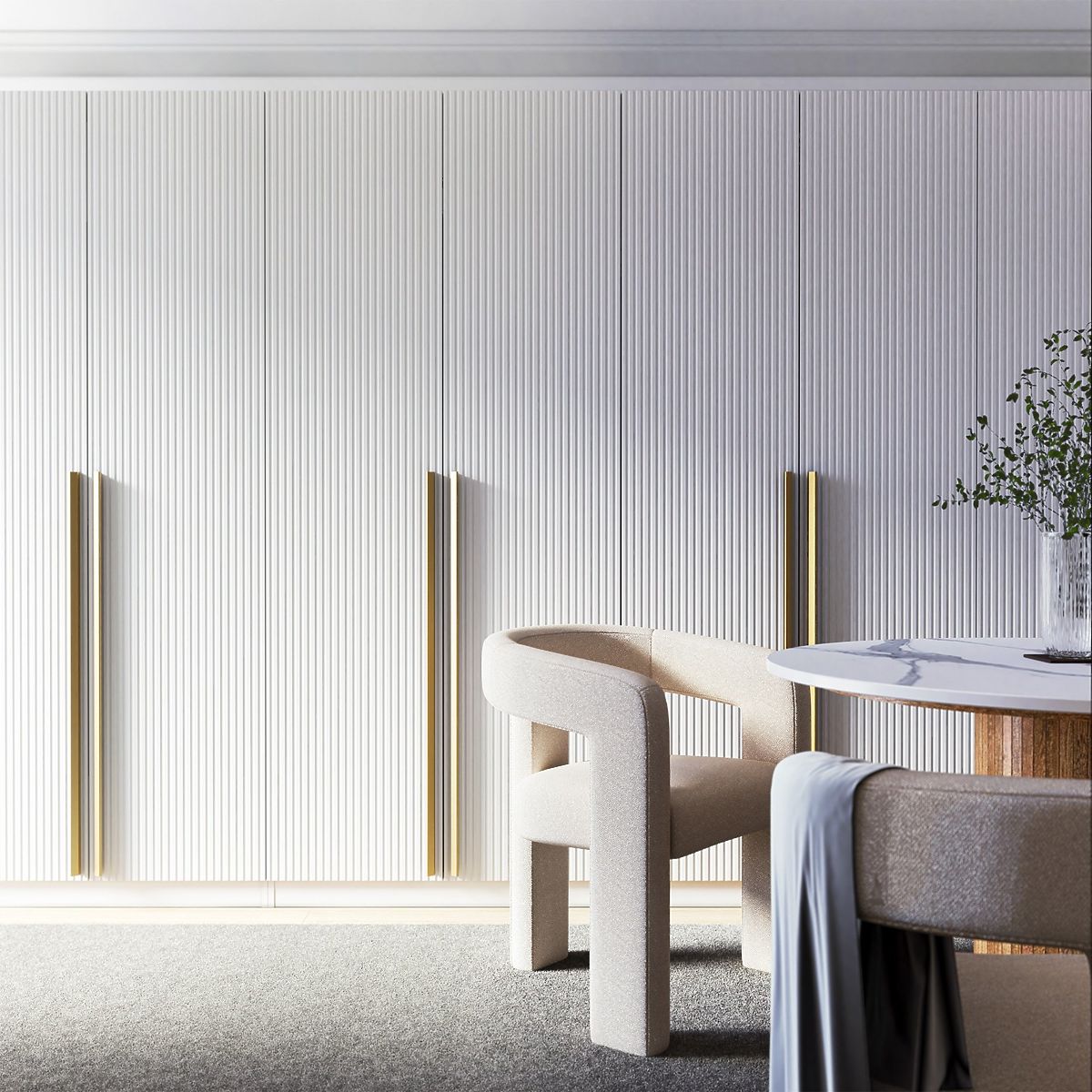 Tür für den Schrank Neroli mit dekorativen Rillen und Push-to-Open-System. .. mehr