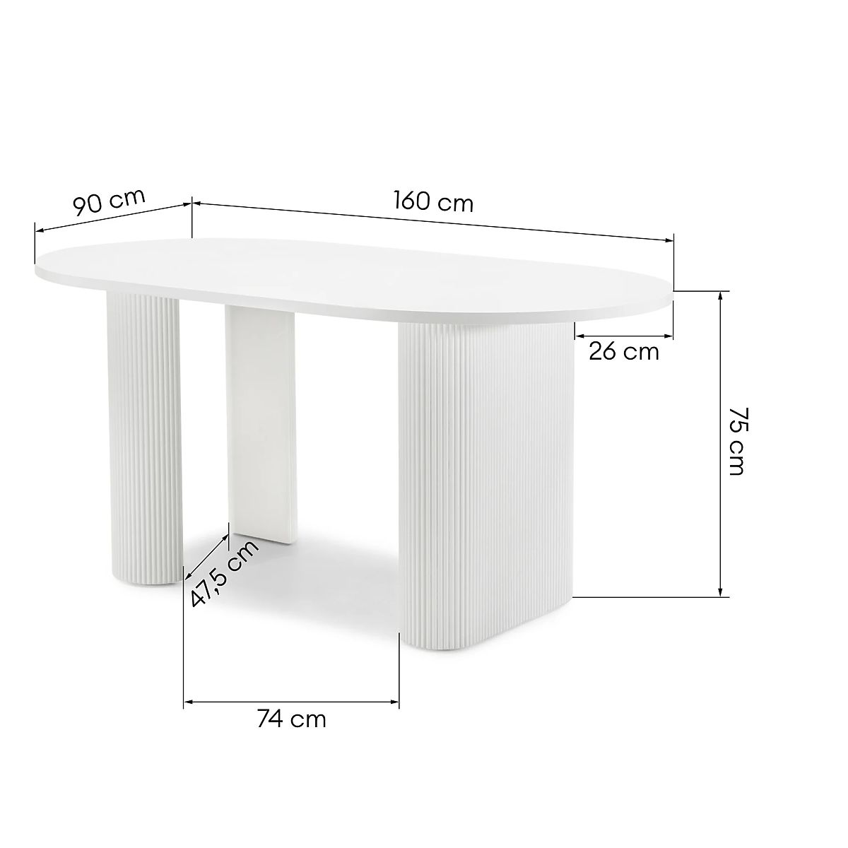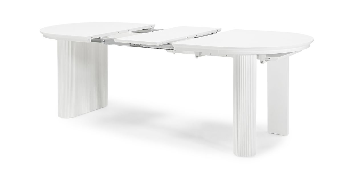 Lukahome.at » Jídelna a kuchyně / Jídelní stoly / Ausziehbarer Tisch Audrey 160-240 cm, oval, weiß, mit Rillen, abgerundete Formen