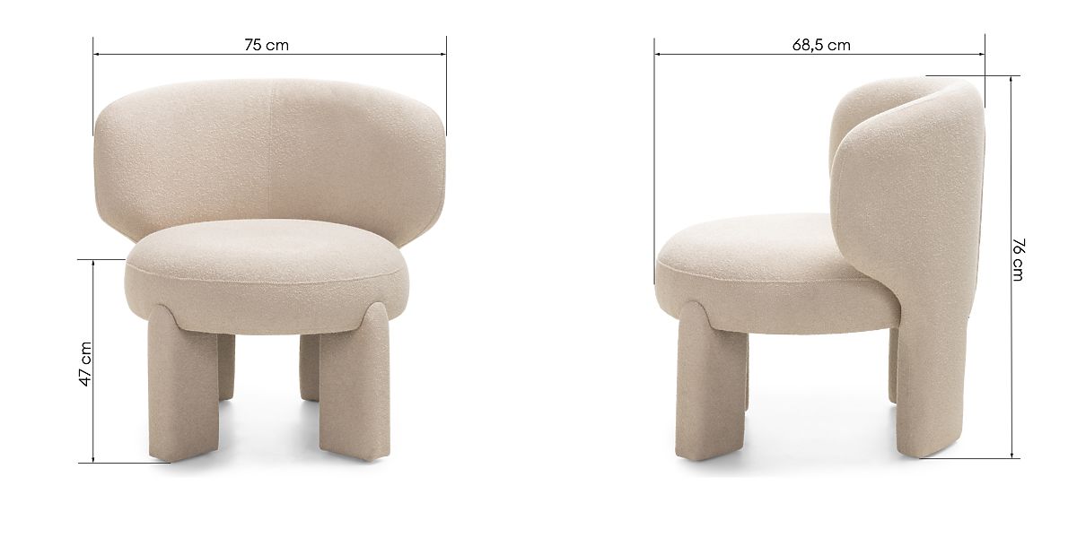 Lukahome.at » Křesla a sezení / Křesla / Gepolsterter Sessel Elaine beige, Bouclé, abgerundete Formen
