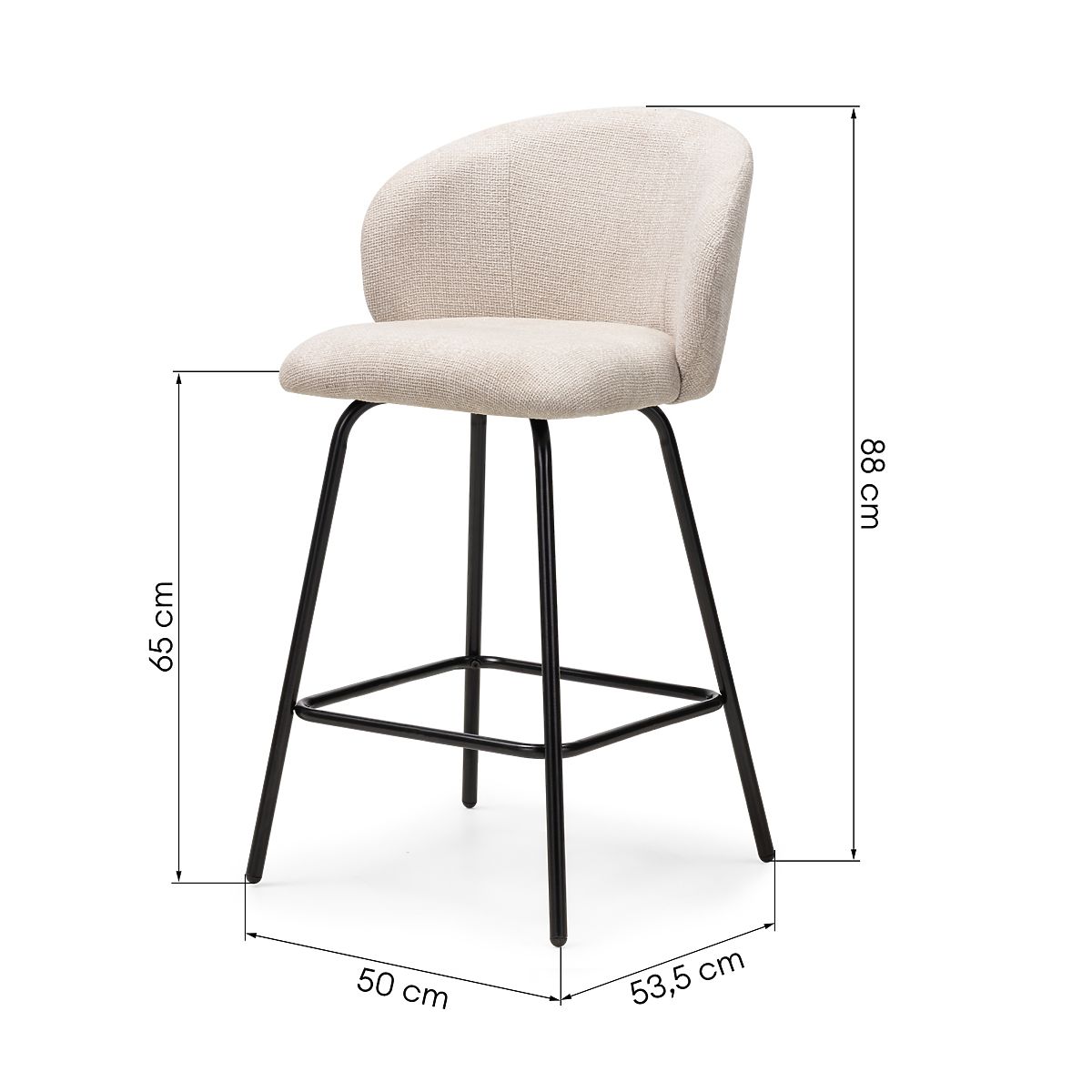 Barhocker mit beige Polsterung und schwarzen Metallbeinen. .. mehr