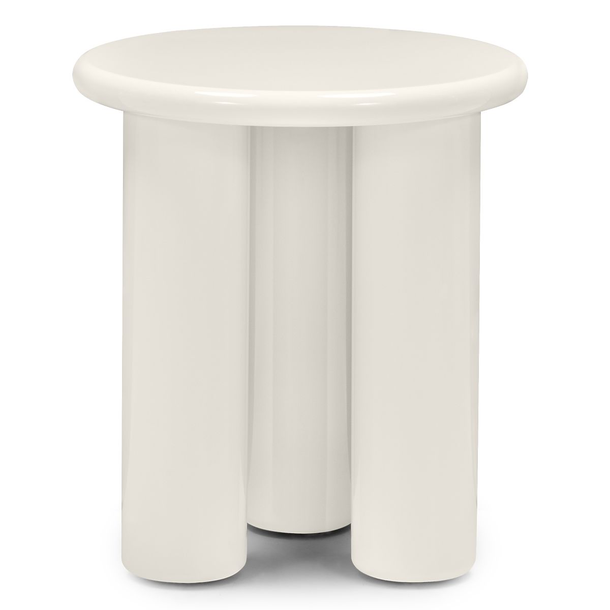 Cremefarbener Beistelltisch mit glänzender Oberfläche und abgerundeten Kanten. .. mehr