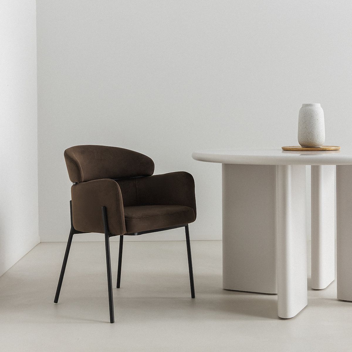 Stuhl Granda in Espresso mit Samtbezug und Metallbeinen. .. mehr